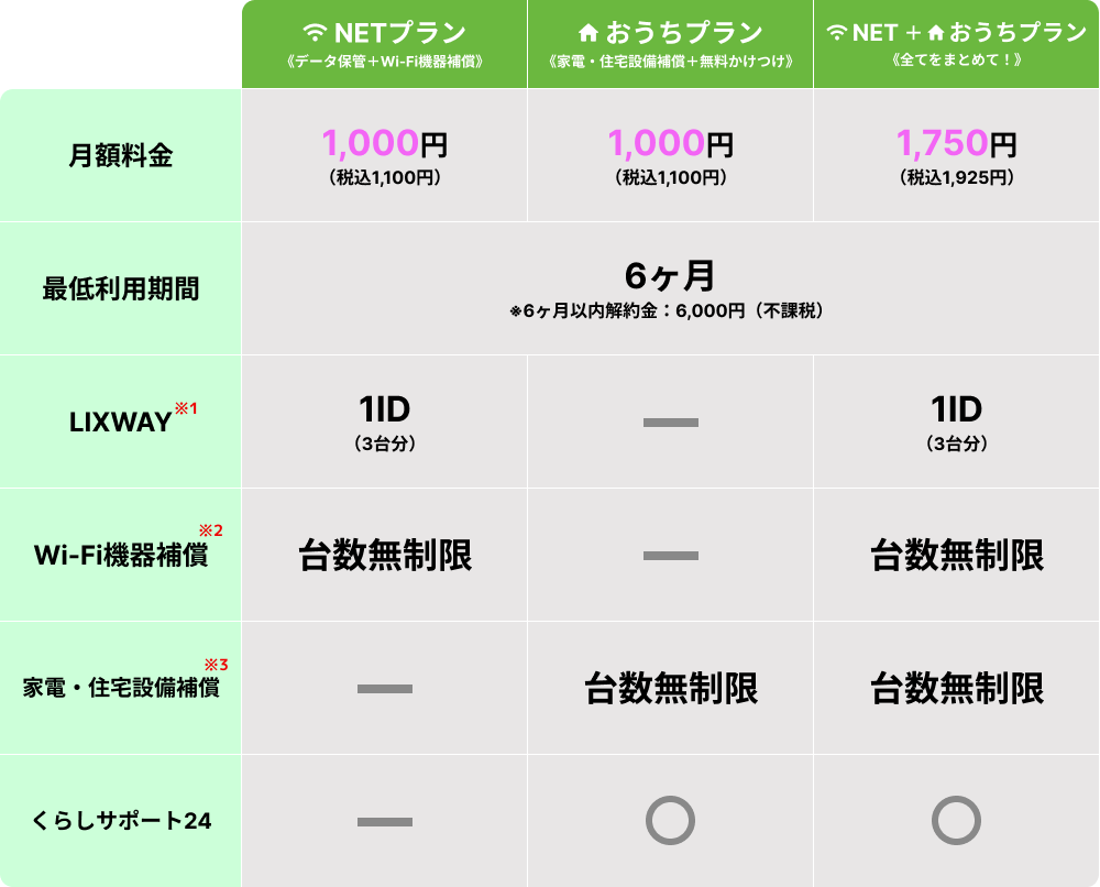 - ネットプランには、弊社インターネットサービス加入が必要となります。